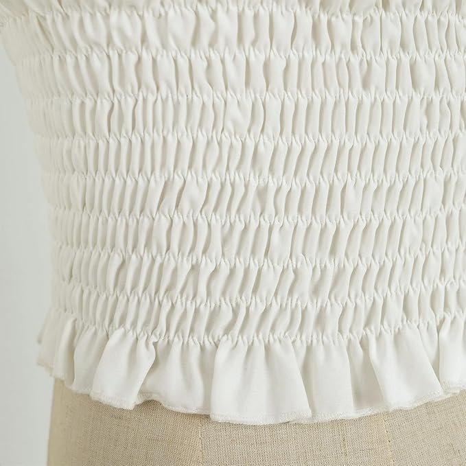 The elastic high smocked waist creates a flattering silhouette, highlighting curves without compromising freedom of movement. Pair it with jeans, skirts, or fitted trousers to achieve a wide range of looks that suit your personal style.